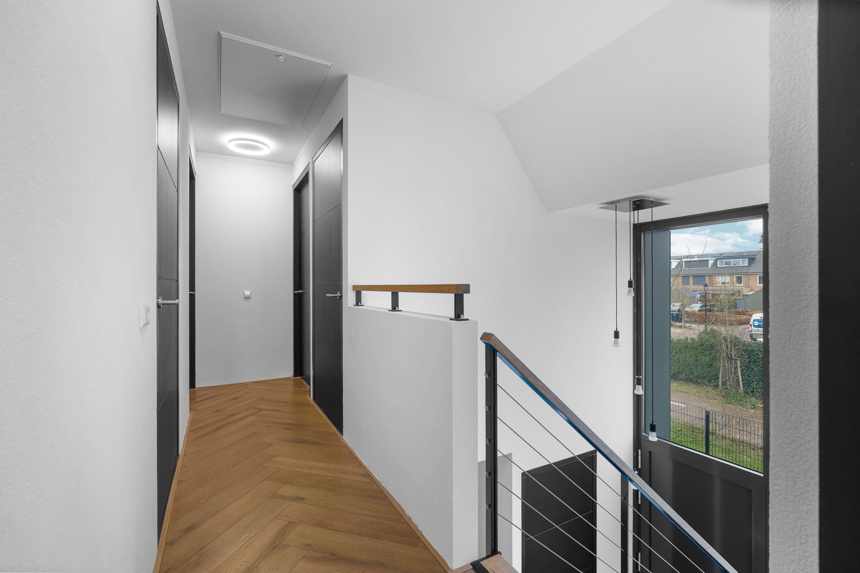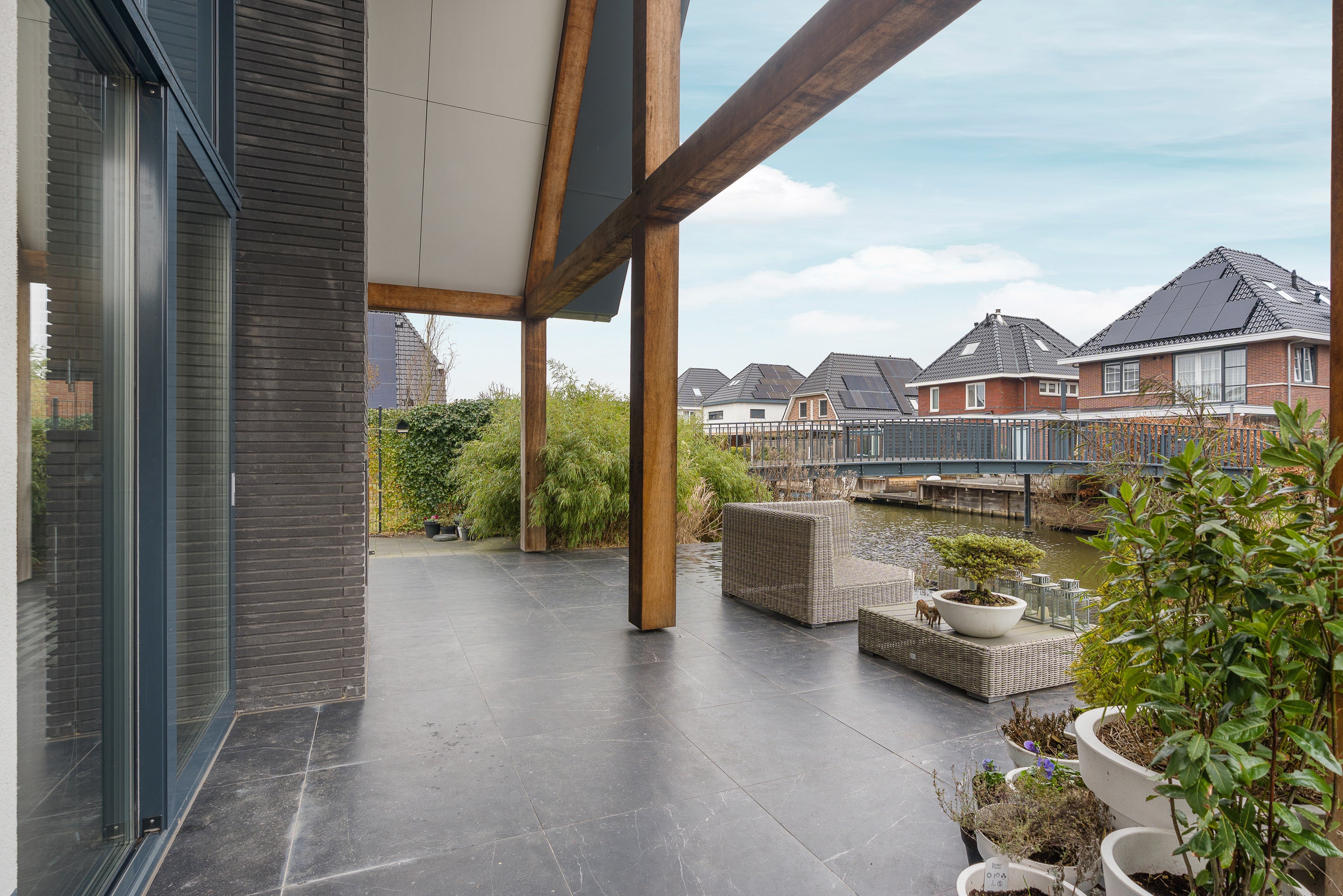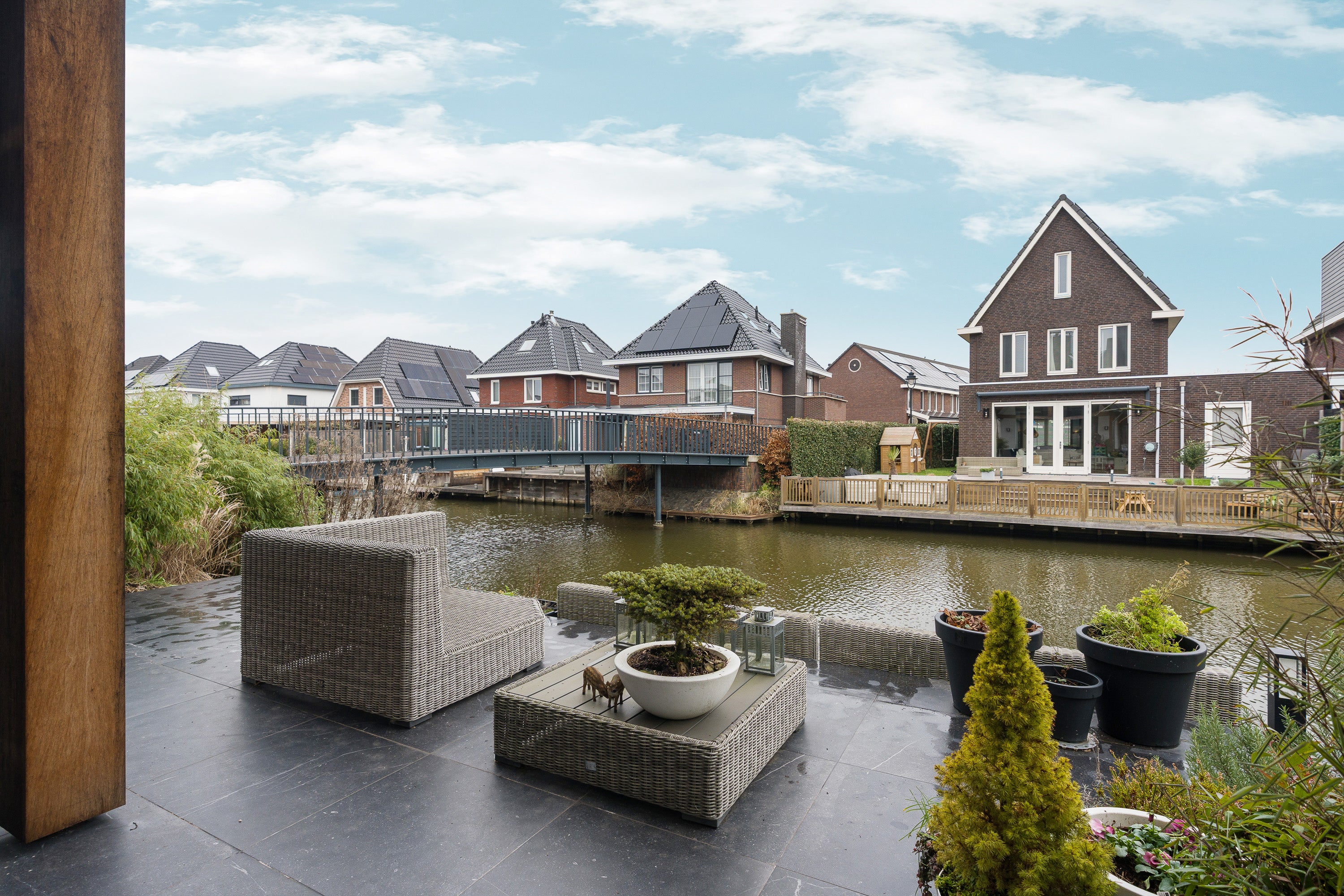 In Nobelhorst vindt u een unieke, vrijstaande villa aan vaarwater. Dit architectonisch ontwerp is een perfecte combinatie van luxe, ruimte en duurzaamheid. De woning, gebouwd in 2021, heeft grote raampartijen en indrukwekkende houten spanten van Bilinga en Padouk. Het biedt heerlijk uitzicht op de tuin en het water, waar uw eigen steiger zich bevindt. De entree verwelkomt u met een stijlvolle hal en een open trap naar de eerste verdieping. Op de begane grond treft u een ruime living met keramische tegels en een Bulthaup keuken met hoogwaardige apparatuur. Ook een slaap-/werkkamer en badkamer bevinden zich hier. De eerste verdieping herbergt drie slaapkamers en een luxe badkamer. De tuin is verzorgd met terrassen en een houthaard, perfect voor gezellige avonden. Met 214 m² woonoppervlakte en talrijke duurzame voorzieningen is deze villa een droom voor liefhebbers van luxe en buitenleven.