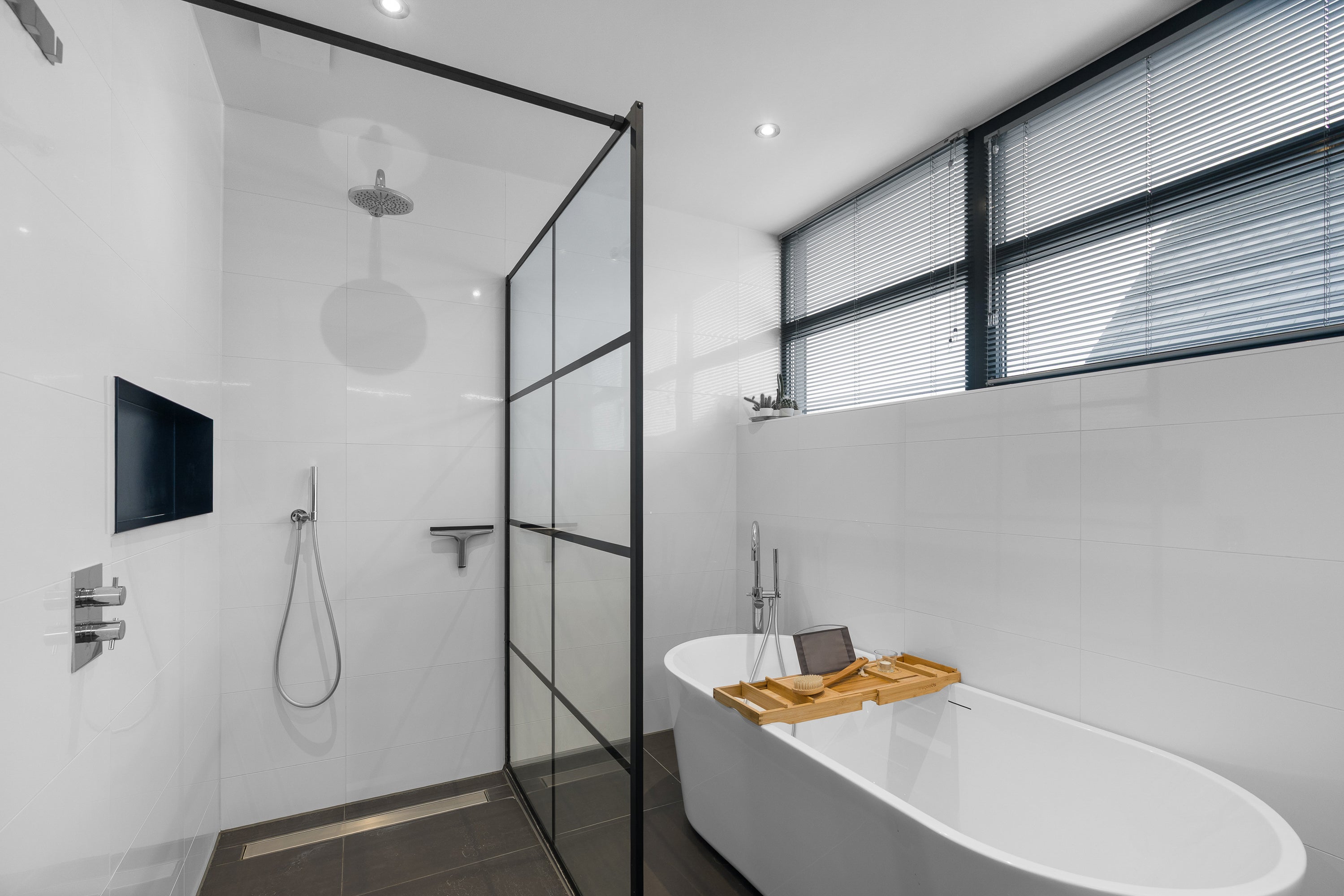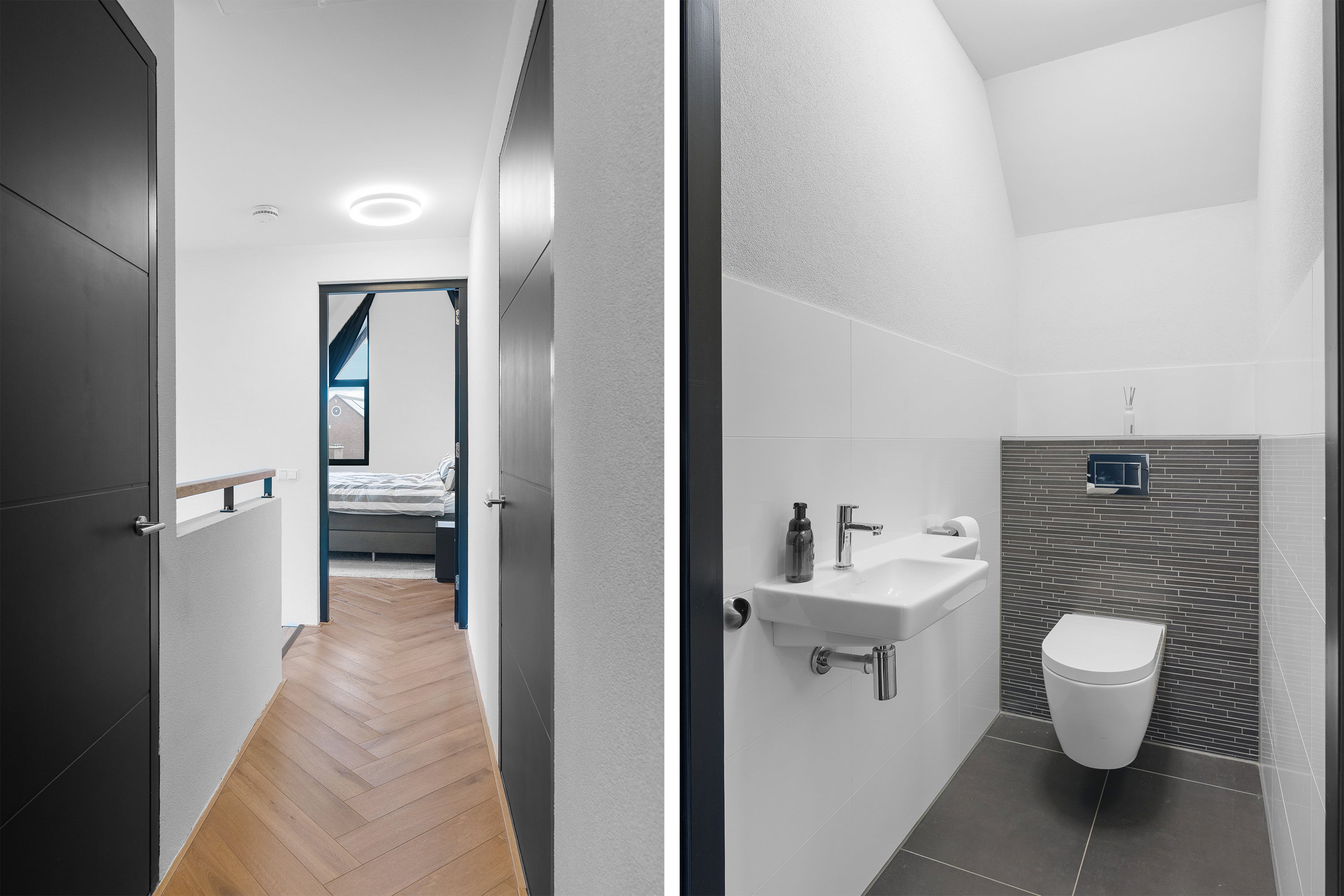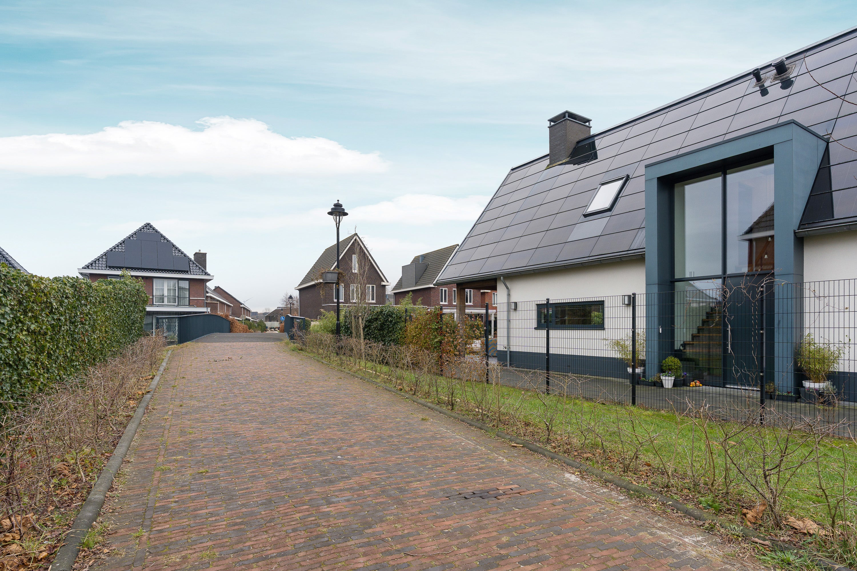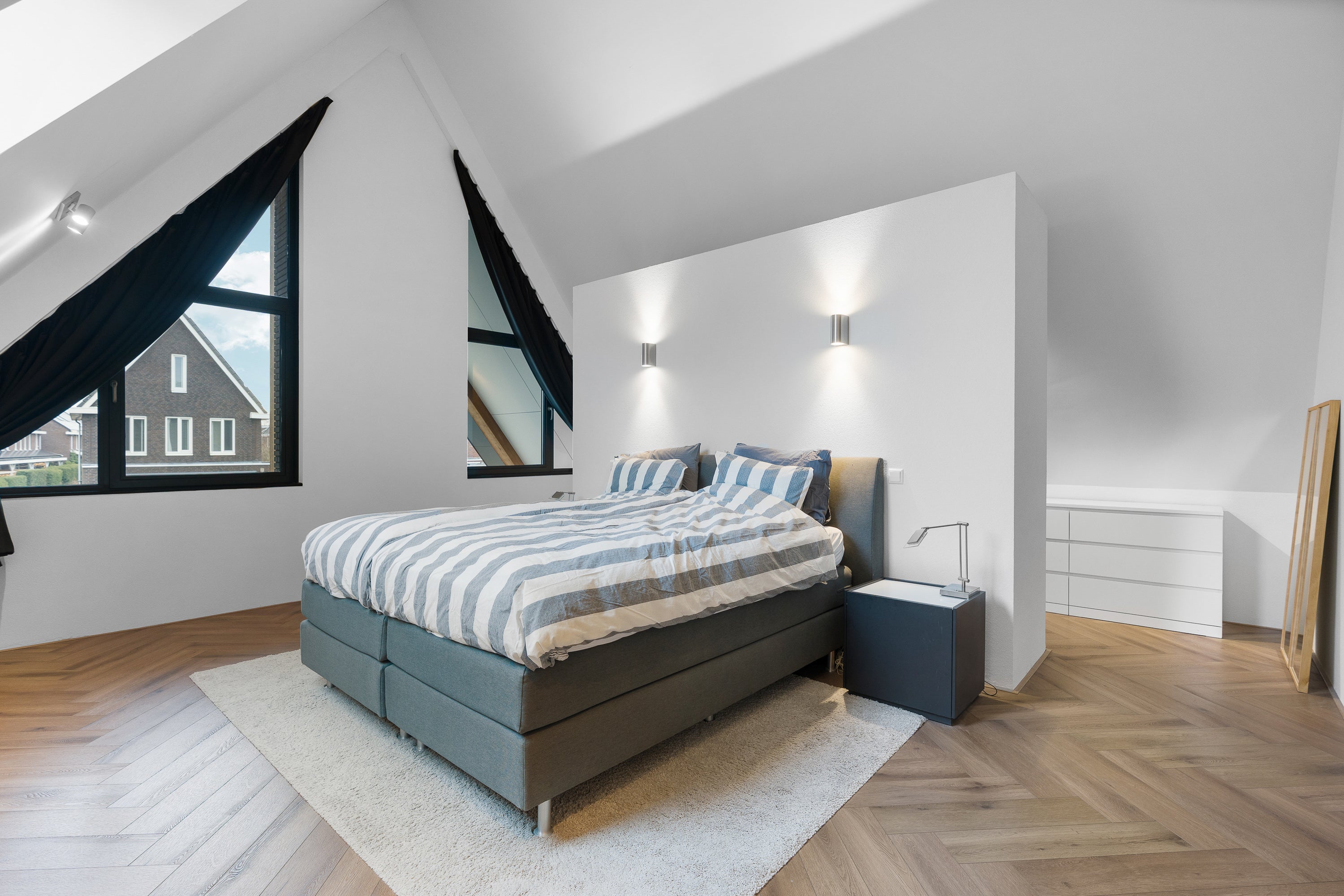 In Nobelhorst vindt u een unieke, vrijstaande villa aan vaarwater. Dit architectonisch ontwerp is een perfecte combinatie van luxe, ruimte en duurzaamheid. De woning, gebouwd in 2021, heeft grote raampartijen en indrukwekkende houten spanten van Bilinga en Padouk. Het biedt heerlijk uitzicht op de tuin en het water, waar uw eigen steiger zich bevindt. De entree verwelkomt u met een stijlvolle hal en een open trap naar de eerste verdieping. Op de begane grond treft u een ruime living met keramische tegels en een Bulthaup keuken met hoogwaardige apparatuur. Ook een slaap-/werkkamer en badkamer bevinden zich hier. De eerste verdieping herbergt drie slaapkamers en een luxe badkamer. De tuin is verzorgd met terrassen en een houthaard, perfect voor gezellige avonden. Met 214 m² woonoppervlakte en talrijke duurzame voorzieningen is deze villa een droom voor liefhebbers van luxe en buitenleven.