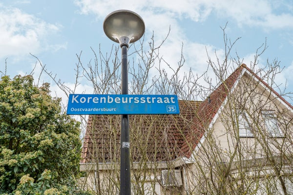Deze vrijstaande villa aan de Korenbeurstraat 4 in de Oostvaardersbuurt biedt een woonoppervlak van 216 m² en is omgeven door een prachtige tuin, gelegen aan de bosrand en de Oostvaardersplassen. De woning, ontworpen door Jan des Bouvrie, heeft een tijdloos ontwerp met strakke lijnen en witte gevels. De ruime hal leidt naar een lichte woonkamer met vloerverwarming en openslaande deuren naar de tuin. De praktische hoekkeuken is voorzien van moderne apparatuur. Op de eerste verdieping zijn twee slaapkamers en twee badkamers, inclusief een luxe badkamer en-suite. De bovenste verdieping biedt een royale slaapkamer en opslagruimte. De tuin, met toegang tot het bos, zorgt voor optimale privacy.