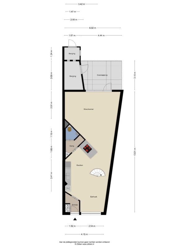 - De tussenwoning heeft een woonoppervlakte van 99 m² en beschikt over 3 kamers;