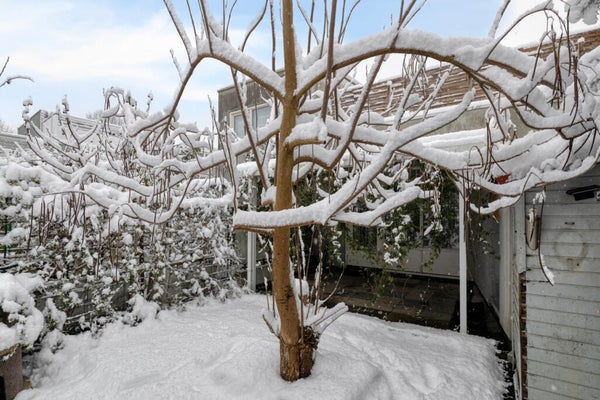 In de aan de woonkamer grenzende achtertuin bevind zich een stenen alsook een houten berging welke via de poort achterom te bereiken zijn.