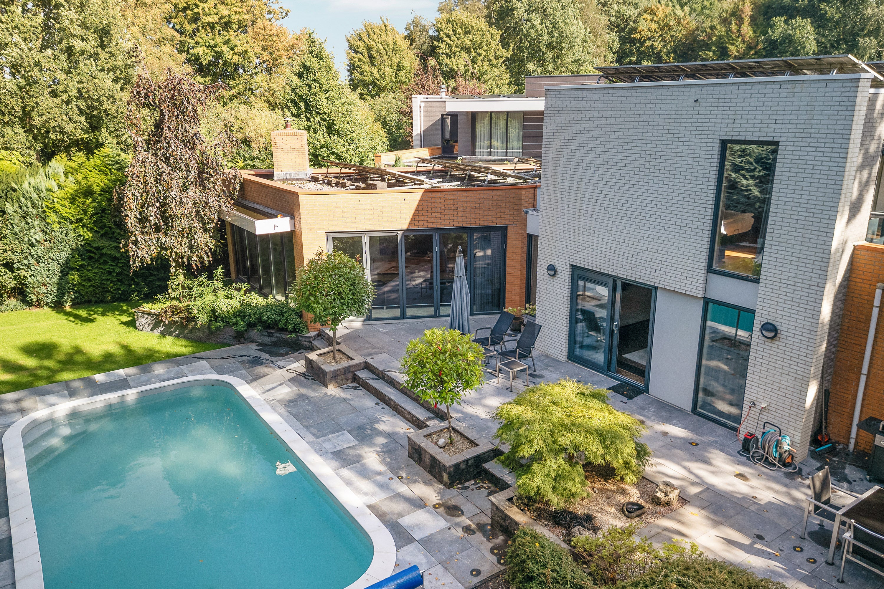 In het schilderachtige Almere Hout vindt u deze unieke, vrijstaande villa op een rustige locatie. De villa biedt privacy en is omringd door natuur, met een grote tuin waar een verwarmd zwembad en een sfeervol terras zijn gelegen. Via harmonica buitendeuren in de living heeft u een prachtig uitzicht op de tuin, ideaal voor zomerse dagen.