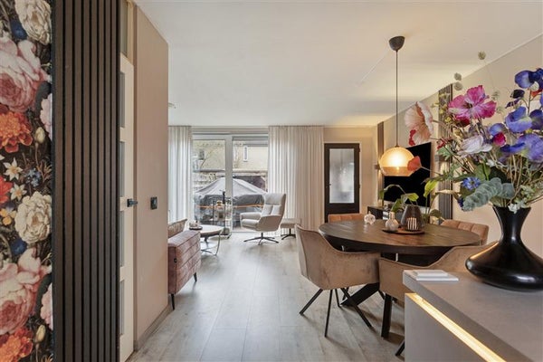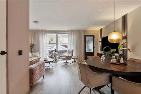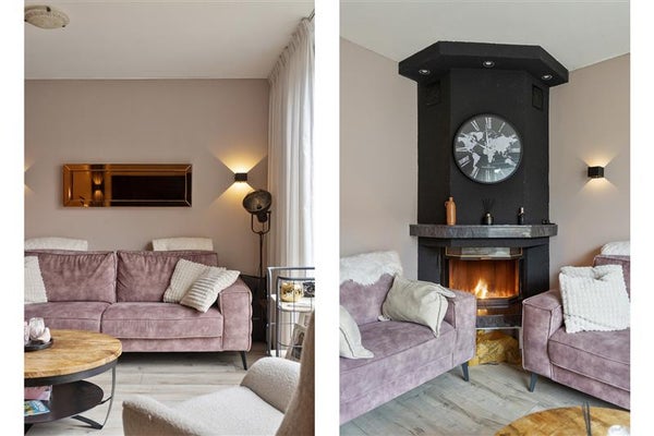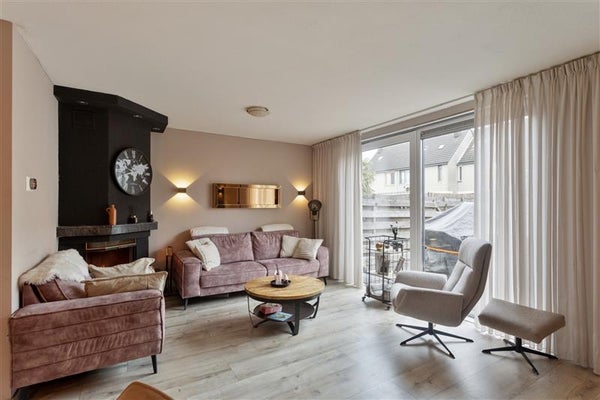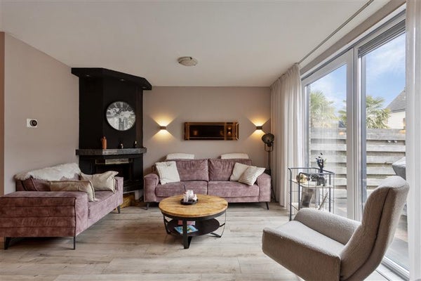 Het begint al bij de voordeur: deze woning voelt direct als een warm welkom. Bij binnenkomst word je verwelkomd in de hal met een frisse uitstraling. Vanuit hier loop je door naar de royale tuingerichte woonkamer. Grote ramen zorgen voor een overvloed aan natuurlijk licht en brengen buiten letterlijk naar binnen. Voeg daarbij de sfeervolle open haard, en je hebt de perfecte setting voor Netflix-avonden, bordspellen met de kids, of simpelweg heerlijk bijkomen na een drukke dag.