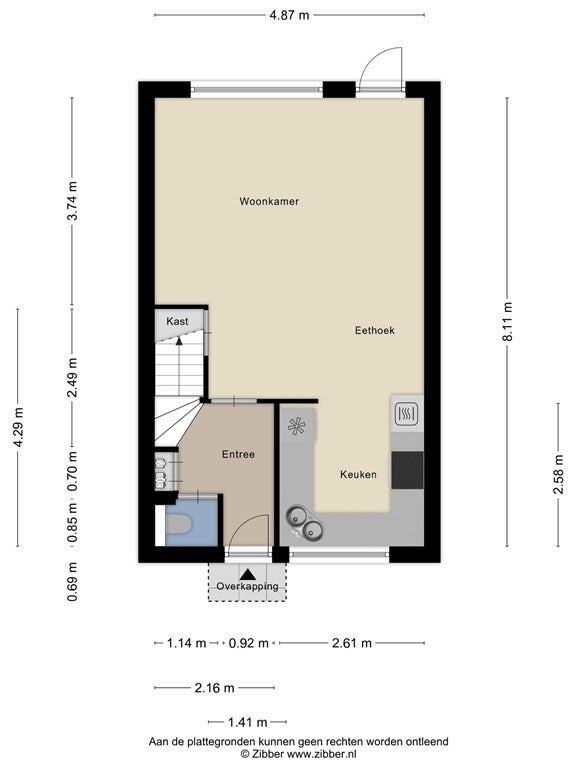 - Aanwezig (55 m², gelegen op het noordwesten)
