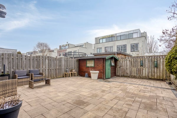 De achtertuin is gelegen op het zuidoosten en biedt daarmee een prettige zonligging gedurende de dag. De tuin is verzorgd en grotendeels bestraat, wat zorgt voor een onderhoudsvriendelijk geheel met voldoende ruimte voor een zit- of eethoek. Achterin bevindt zich een praktische externe berging van circa 7,3 m², ideaal voor fietsen en tuinspullen.