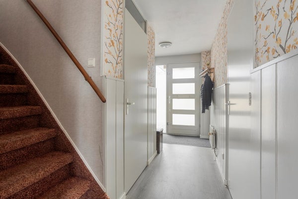 Aan de voorzijde van de woning bevindt zich een eigen oprit met parkeergelegenheid voor één auto. Via de entree kom je in de hal met toegang tot de verschillende ruimtes. Aan de voorzijde bevindt zich een extra (slaap)kamer, ideaal als hobbykamer of praktijkruimte. De woonkamer is gelegen aan de achterzijde en biedt ruimte voor een comfortabele zithoek en een eethoek. Via de schuifpui is er directe toegang tot de diepe achtertuin, waardoor binnen en buiten mooi met elkaar verbonden zijn.
