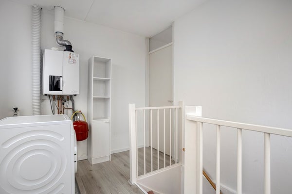 Op de overloop bevinden zich de cv-installatie en de aansluiting voor de wasmachine.