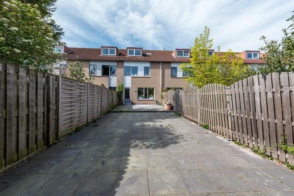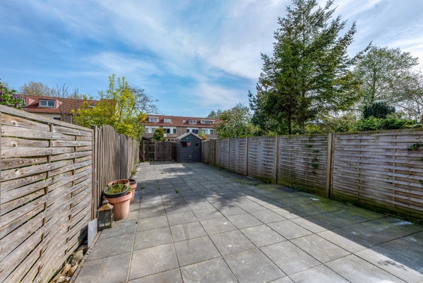 Achter de woning ligt een ruime, zeer diepe, volledig verharde tuin van ca. 82 m², bereikbaar via achterom. De tuin biedt voldoende plaats voor zit- en speelruimtes.