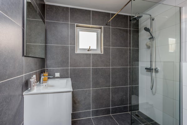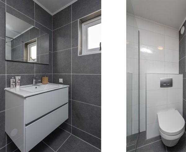 - Badkamer met inloopdouche, toilet, wastafel en badmeubel