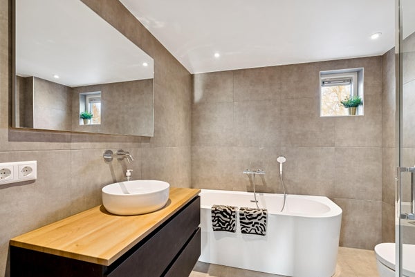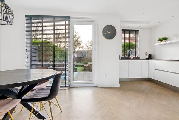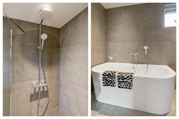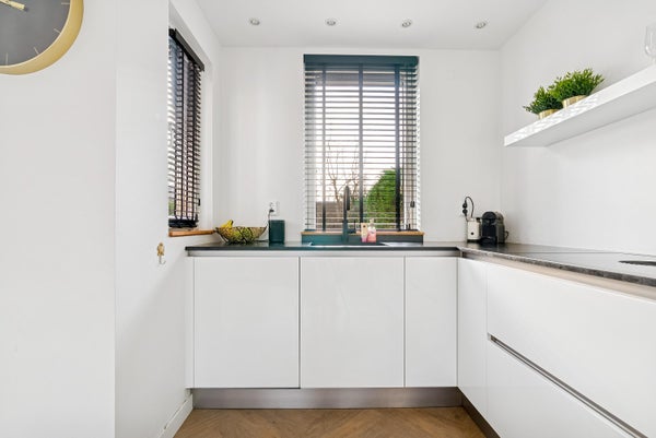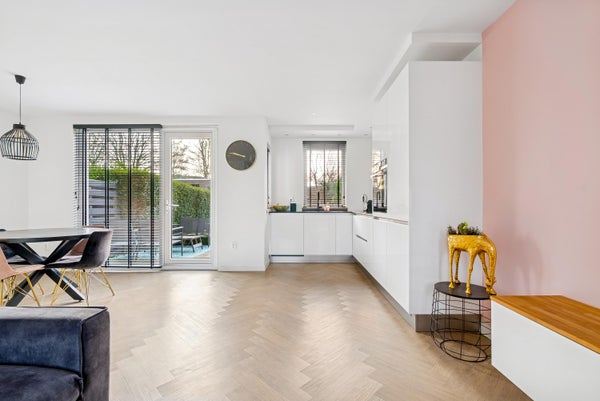 Bij binnenkomst stapt u in een hal die toegang geeft tot een lichte woonkamer met vloerverwarming. Aansluitend bevindt zich de keuken van 2021, compleet met moderne inbouwapparatuur. Op de eerste verdieping zijn er drie slaapkamers en een badkamer met ligbad en inloopdouche. De tweede verdieping biedt nog twee slaapkamers, een ruime overloop en airconditioning.