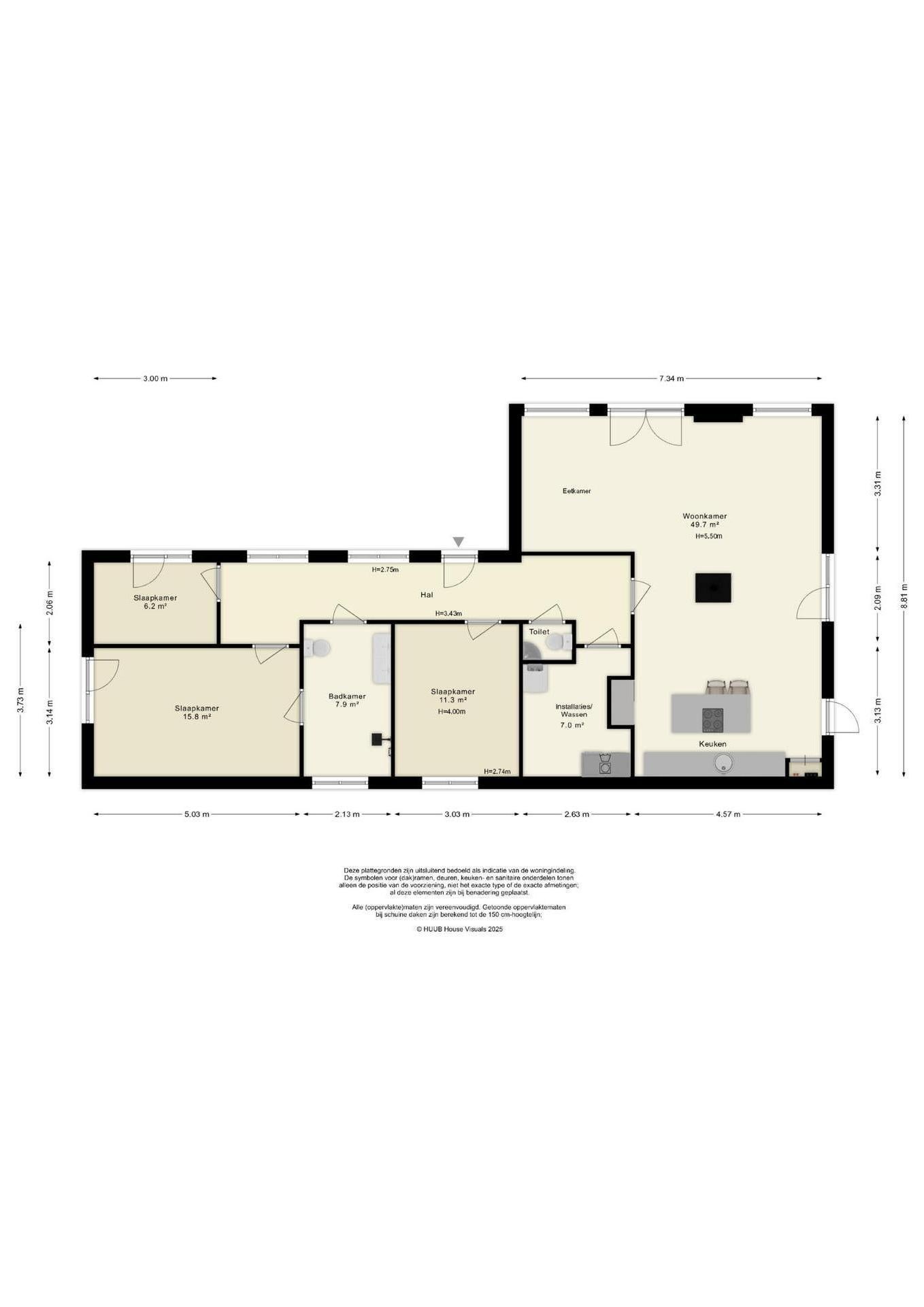 - De tussenwoning heeft een woonoppervlakte van 119 m² en beschikt over 5 kamers, waarvan 3 slaapkamers;