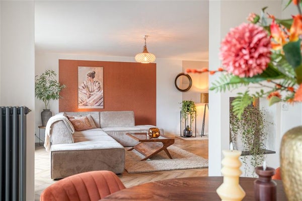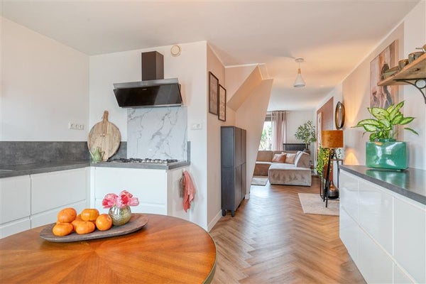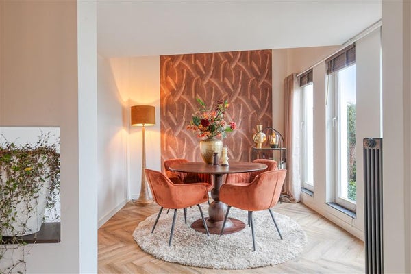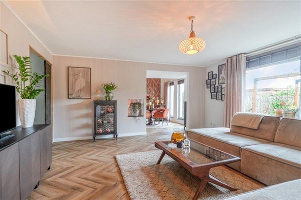 - Sfeervolle woonkamer met veel lichtinval: Hier voel je de zon je woning binnenstromen dankzij de grote raampartijen. Elke hoek heeft een perfecte balans tussen ruimte en gezelligheid.