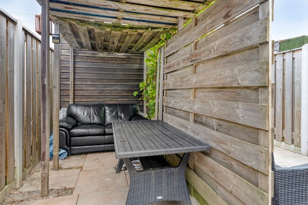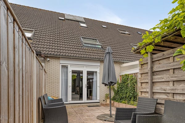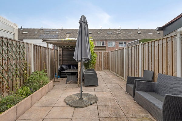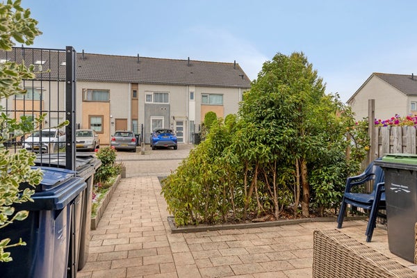 De achtertuin is toegankelijk vanuit de woonkamer en biedt u een onderhoudsarme en zonnige buitenruimte. Het bestraatte terras is perfect om een loungeset of buitentafel te plaatsen, zodat je volop kunt genieten van lange zomerdagen. Achterin de tuin bevindt zich een praktische berging, ideaal voor het stallen van fietsen of het opbergen van tuinspullen. Dankzij de aanwezige poort beschik je bovendien over een achterom.