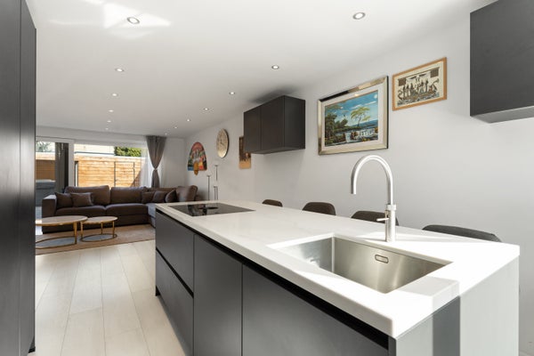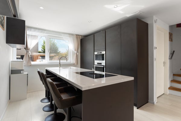 - De tussenwoning heeft een woonoppervlakte van 128 m² en beschikt over 7 kamers, waarvan 5 slaapkamers;