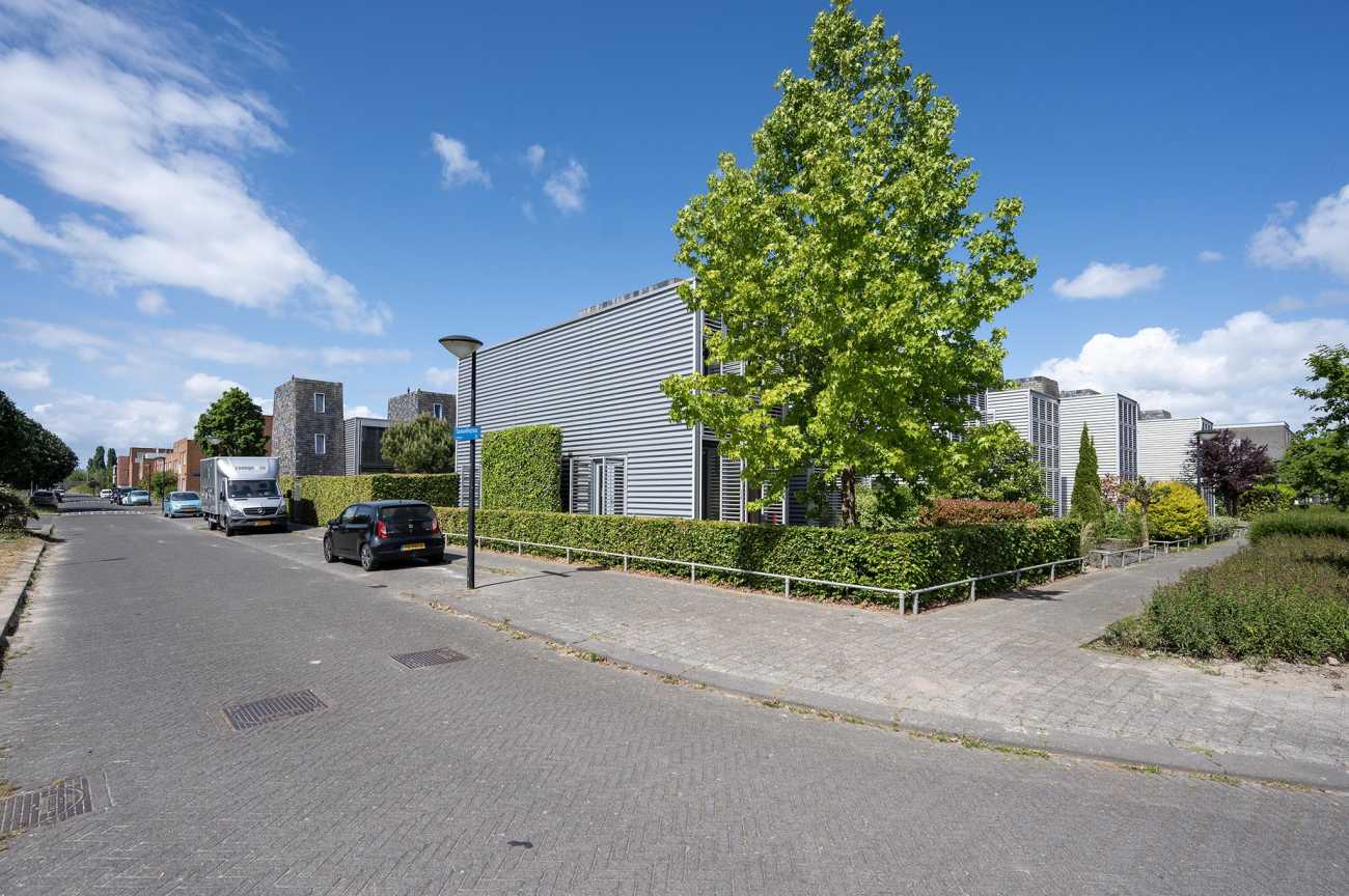 Deze bijzondere onder architectuur gebouwde hoekwoning biedt een sfeervolle living met vide, drie slaapkamers en een fijne tuin op het zuidwesten. Het karakteristieke ontwerp van architectenbureau Marlies Rohmer valt op door de stalen shutters aan de voorzijde. Binnenin geniet u van een speelse indeling en hoge plafonds met grote ramen, wat zorgt voor veel natuurlijk licht. De zonnige achtertuin biedt privacy door beukenhagen. Gelegen in het BouwRai gedeelte 2001 van de Eilandenbuurt, zijn uitvalswegen en voorzieningen zoals scholen en winkels dichtbij. De begane grond heeft een ruime hal, toegang tot de inpandige berging, een tuingerichte woonkamer met openslaande deuren, en een open verbinding naar de keuken. Op de eerste verdieping vindt u twee ruime slaapkamers, een badkamer en een apart toilet. De tweede verdieping huisvest een derde slaapkamer en de cv-installatie. Deze woning bevalt door zijn unieke kenmerken en centrale ligging.