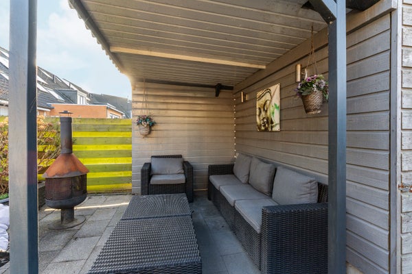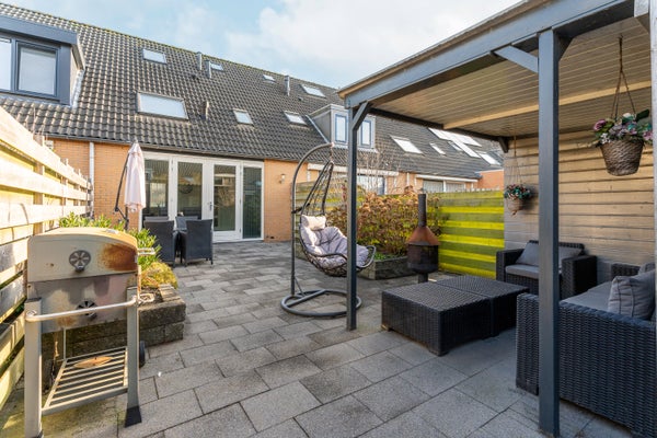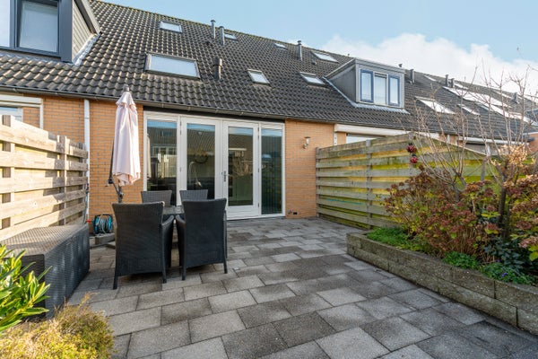 Deze eengezinswoning heeft een bieden-vanaf-prijs en is gelegen in de gewilde Literatuurwijk aan het water. De woning is dichtbij voorzieningen zoals winkels, openbaar vervoer en scholen. Bij binnenkomst in de hal zijn er toegang tot de meterkast, toiletruimte, en de woonkamer met openslaande tuindeuren, wat zorgt voor veel lichtinval. De keuken is volledig uitgerust met inbouwapparatuur en biedt uitzicht op het groen. De eerste verdieping heeft twee lichte slaapkamers en een complete badkamer. De tweede verdieping is een open ruimte die kan dienen als derde slaapkamer. De achtertuin, gelegen op het westen, bevat een overkapping en een berging. De woning is energiezuinig (label A) en heeft een woonoppervlakte van 93 m².