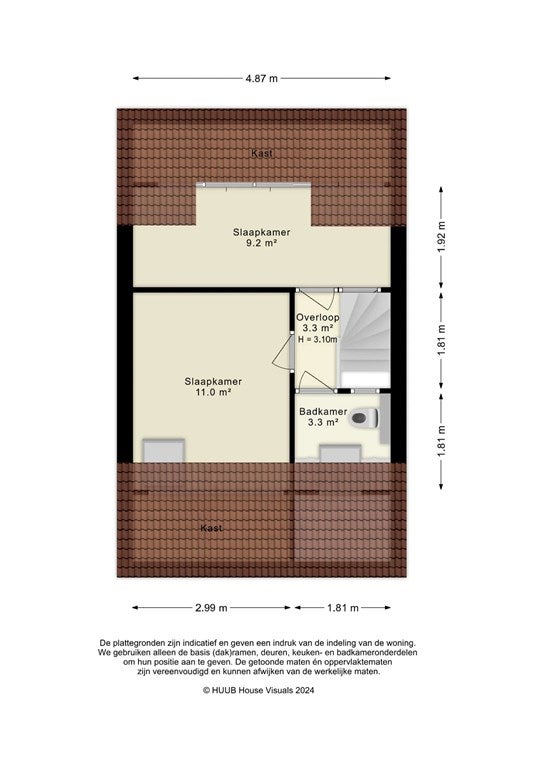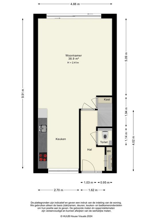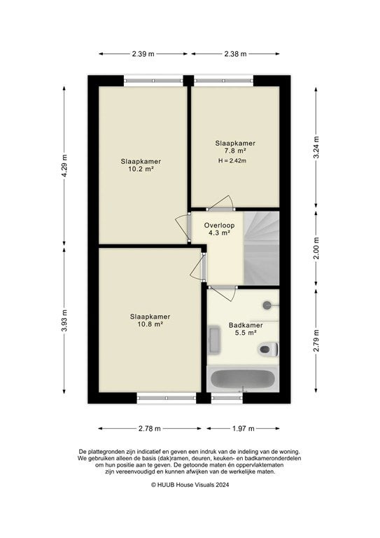 - Aanwezig (55 m², gelegen op het noordoosten)