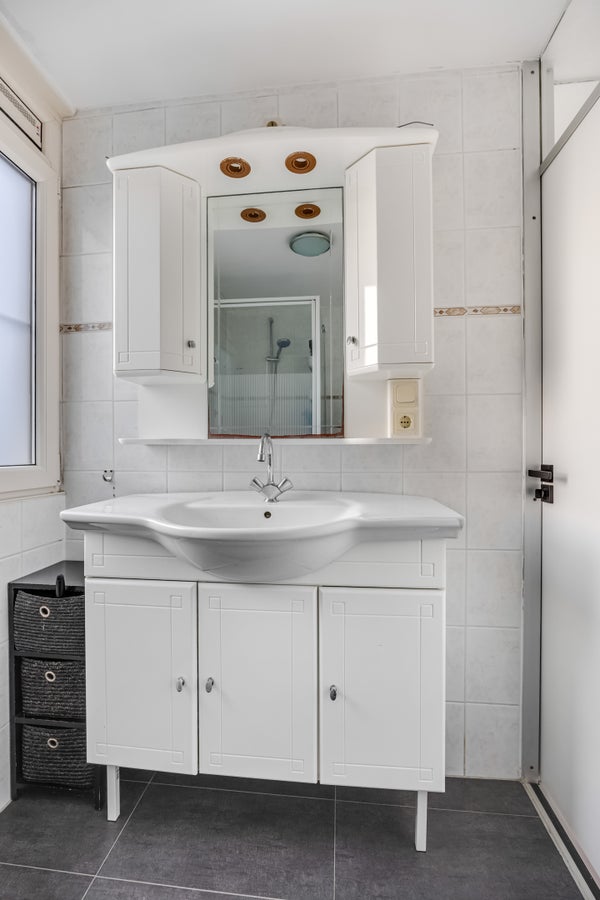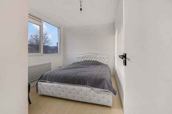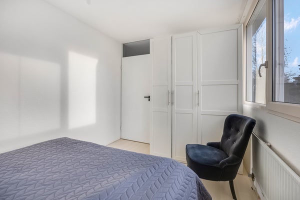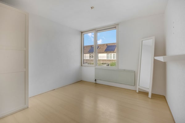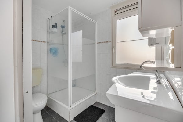 Hier vind je drie ruime slaapkamers en een lichte badkamer. Aan de achterzijde liggen twee royale kamers, ideaal om in te richten als masterbedroom. De derde slaapkamer bevindt zich aan de voorzijde en is dankzij de grote ramen perfect als kinderkamer, werkkamer of hobbyruimte. De badkamer is voorzien van een groot raam en ingedeeld met een douche, toilet en een modern badmeubel. Boven de wastafel hangen twee praktische kasten en een spiegel met verlichting. De lichte, neutrale afwerking maakt het eenvoudig om de ruimte naar eigen smaak te stylen.
