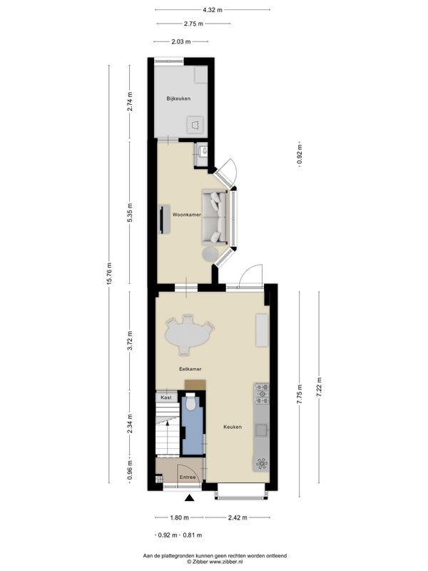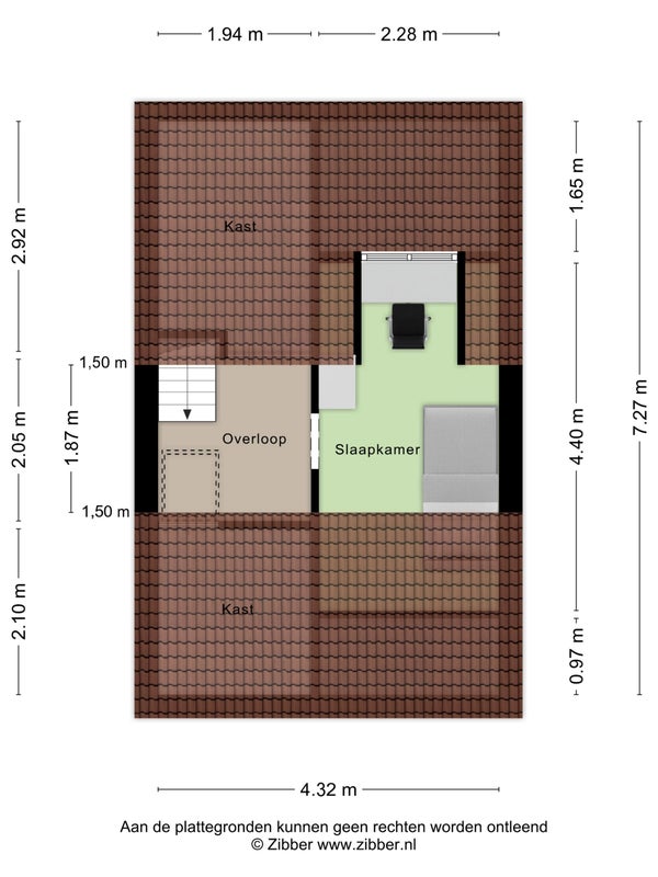 - Aanwezig (32 m², gelegen op het noordoosten)