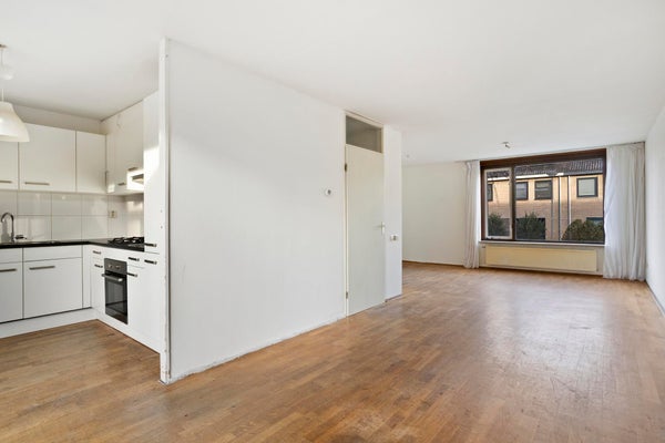 Via de entree met trapopgang, meterkast en gastentoilet betreed je de woning. De ruime doorzonwoonkamer geniet van veel lichtinval en staat in verbinding met de (half-)open keuken, met doorgang naar de achtertuin. Aansluitend bevindt zich de bijkeuken met witgoedaansluiting.