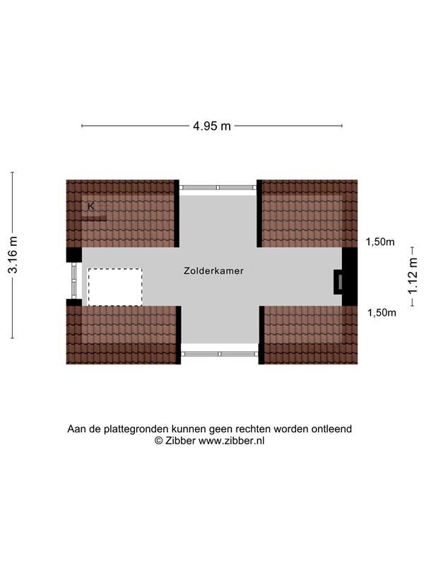 Kap: (overig inpandige ruimte) open ruimte, slaapruimte/werkruimte met dakkapel aan de voor en achterzijde;