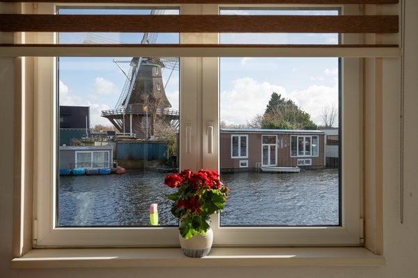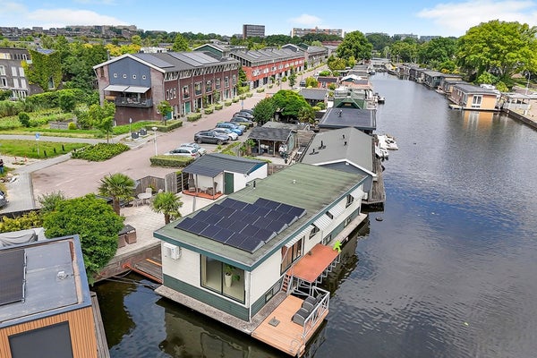 Riante woonark met prachtige ligplaats aan de Ringvaart van de Haarlemmermeer in het groene stadsdeel Amsterdam Nieuw-West.