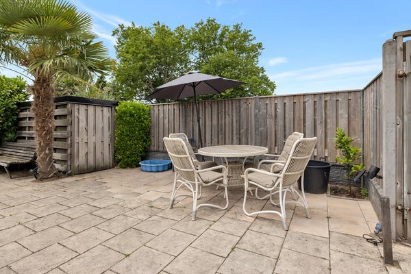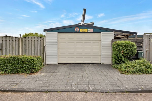 Tussen de wal en de ark is een grote hardhouten vlonder aanwezig. De omheinde plaats is ca. 17.00 x 5.00 m, er staat een garage van ca. 6.00 x 4.00 m met een elektrische kanteldeur op een betonplaat. Daarnaast is er een fietsenberging van ca. 3.00 x 2.00 m. Aan de garage zit een veranda met afdak. Aan de zonzijde is zonwering (uitvalschermen) aanwezig. Buiten de garage is er één P-vergunning voor op straat mogelijk. Verder is er camerabewaking aanwezig met een harde schijf die de beelden een hele week bewaart.