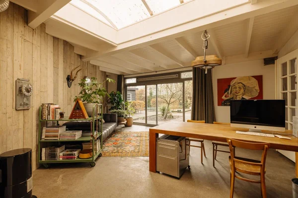 In het groene Betondorp, te midden van Watergraafsmeer, ligt dit unieke benedenhuis in het voormalige schoolgebouw "De Scheepskameel". Het huis van 327 m² heeft hoge plafonds van 3,60 meter en biedt een bijzondere combinatie van sfeer en comfort. De royale woonkeuken, gelegen in de voormalige gymzaal, beschikt over moderne apparatuur en een groot kookeiland. Openslaande deuren leiden naar de fraai aangelegde tuin op het zuidoosten. Daarnaast zijn er vier slaapkamers, waaronder een riante masterbedroom, en een lichtovergoten woonkamer met toegang tot de zonnige tuin op het zuidwesten. De vernieuwde badkamer biedt luxe en ruimte, en het huis is instapklaar. Authentieke details zijn met modern comfort gecombineerd. Dit huis, dat in totaal 20 jaar door de huidige eigenaren met plezier is bewoond, vormt een zeldzame kans voor nieuwe bewoners.