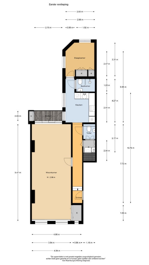 - De tussenwoning heeft een woonoppervlakte van 72 m² en beschikt over 2 kamers, waarvan 1 slaapkamer;