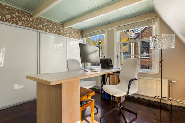 Op een bijzondere plek, aan de rand van de geliefde Jordaan, bevindt zich dit karakteristieke Rijksmonument uit circa 1750. De woning is met veel zorg en aandacht bewoond, wat direct zichtbaar is in de uitstekende staat van onderhoud. In 2017 is de gehele begane grond grondig en stijlvol gerenoveerd, inclusief funderingsherstel. Recent is bovendien het buitenschilderwerk nog uitgevoerd. Het pand is gelegen op eigen grond en biedt een perfecte combinatie van wonen en werken. De begane grond fungeert als zelfstandige studio en is ideaal als gastenverblijf en/of werkruimte. Deze verdieping beschikt over een royale, multifunctionele ruimte die, naast wonen, perfect is in te richten als atelier, kantoor of hobbyruimte. De woning strekt zich uit over drie verdiepingen en beschikt over twee/drie ruime slaapkamers. Authentieke details zijn zorgvuldig behouden gebleven, wat bijdraagt aan de bijzondere sfeer van het huis. De grote woonkeuken vormt het hart van de woning en is ideaal voor gezellige diners. Dit unieke pand biedt een zeldzame combinatie van historische charme, moderne afwerking, flexibiliteit en een toplocatie. Een bezichtiging is absoluut de moeite waard!