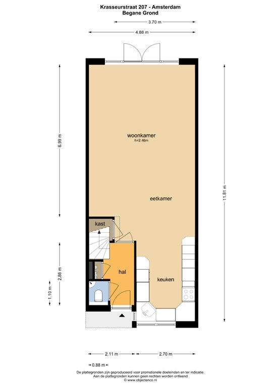 - Aanwezig (35 m², gelegen op het zuidoosten)