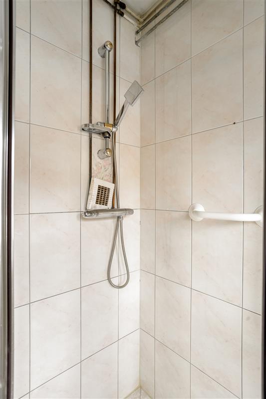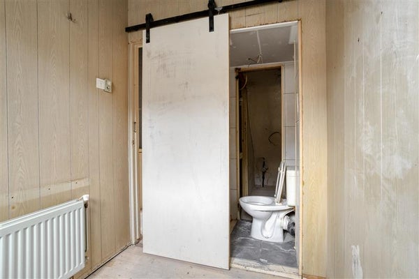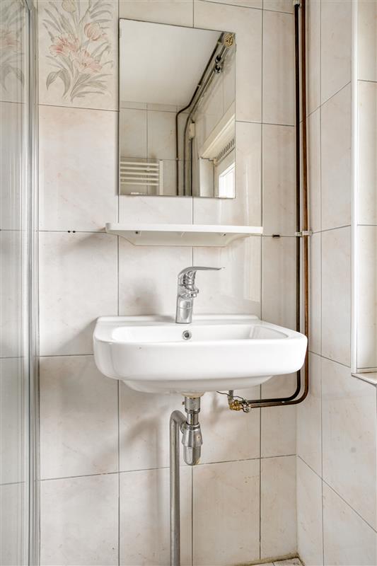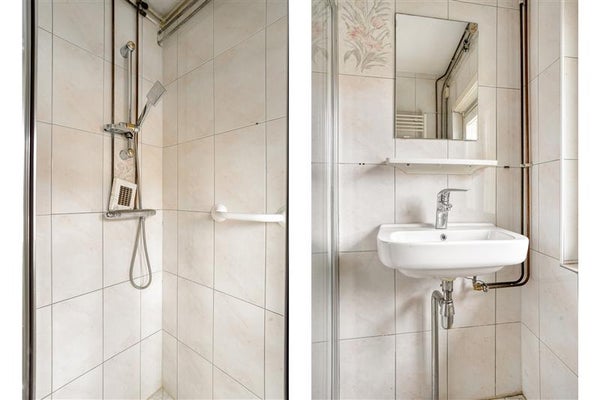 Eerste verdieping: via de overloop heb je toegang tot de twee slaapkamers, de badkamer en een separaat toilet. De slaapkamers zijn ruim en licht en volwaardige kamers te noemen. De badkamer is eenvoudig afgewerkt.