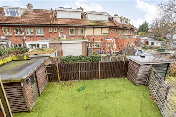 Deze bijzonder ruime tuin is gelegen op het westen waar je heerlijk van de zon kunt genieten. In de schuur is genoeg ruimte voor het stallen van je fiets die via de achterom bereikbaar is.