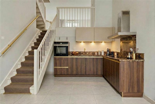 Head up to the first floor and be delighted by the beautiful influx of light in the spacious living room. Tall windows and a warm ambiance make this the perfect spot to relax after a busy day. The showstopper? The exceptionally large 40 m² terrace. Can you picture it? Enjoy complete privacy as you relish a relaxed morning outdoors or a summer evening with friends and a glass of wine under the stars. Every day feels like a gift.
