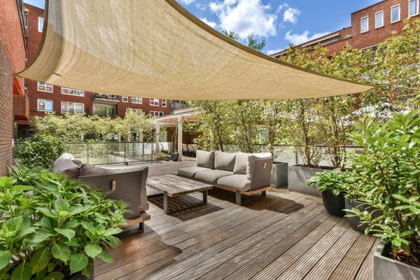 De eyecatchers van het huis zijn de twee riante buitenruimtes 128m² met zowel een goede indeling met diverse gezellige zitjes, als ideale ligging. Het is tot in perfectie benaderd met veel detaillering, zoals de gekozen materialen en overkapping. Een tweede eyecatcher is de masterbedroom! Deze schitterende onder architectuur ontworpen ruimte, is meer dan 7,5 meter hoog en laat een bijzondere en rustgevende indruk achter. Het appartement is zeer praktisch ingedeeld, met vier ruime slaapkamers, twee luxe badkamers en twee toiletten. Dit familiehuis is bovendien van alle moderne gemakken voorzien.