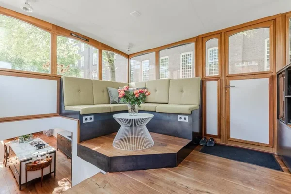 Je betreedt het schip via een elektro-hydraulische loopbrug. Het upper deck heeft sfeervolle verlichting, een dakterras en diverse zitjes. De entree via de hardhouten serre biedt prachtig uitzicht op het Plantage park. De lichte leefruimte heeft een notenhouten vloer met vloerverwarming, een open SMEG keuken en een sfeervolle gashaard. De luxe master bedroom heeft een kingsize bed, een fijne badkamer met regendouche en een dakraam voor sterrenkijkplezier. Een tweede slaapkamer kan eenvoudig worden gecreëerd. Verder is het schip voorzien van airconditioning, domotica en elektrische dakramen. Dit is een zeldzame kans!