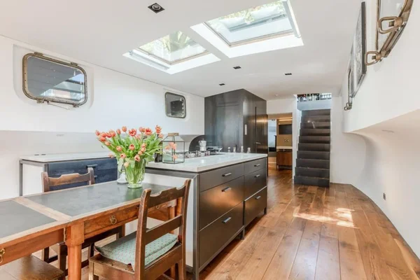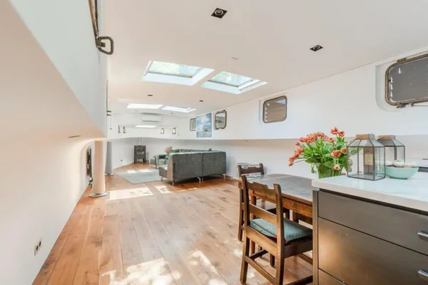 Woonboot "New Emperor" biedt een unieke luxe woonervaring van 103 m² in de Plantagebuurt, achter de Hortus Botanicus. Deze centrale, groene en rustige locatie is omgeven door statige 18e-eeuwse Wittenberg panden en high-end appartementen van de universiteit. Zonder buren en VVE, creëert het een ontspannen levensstijl in uw eigen wereld.