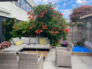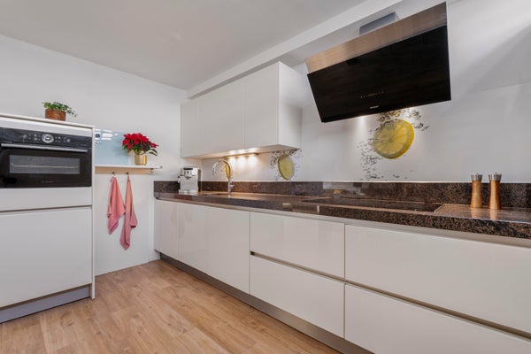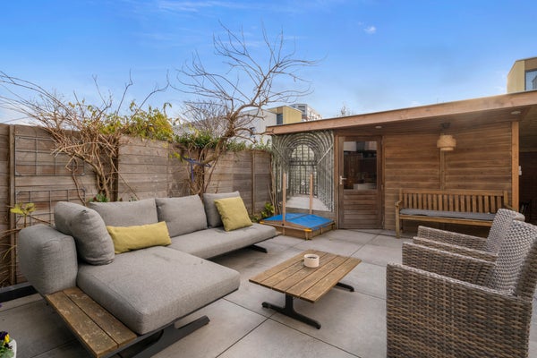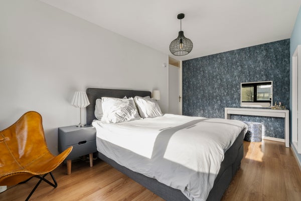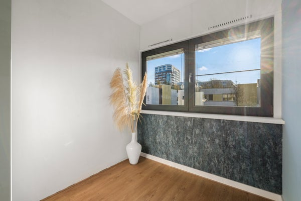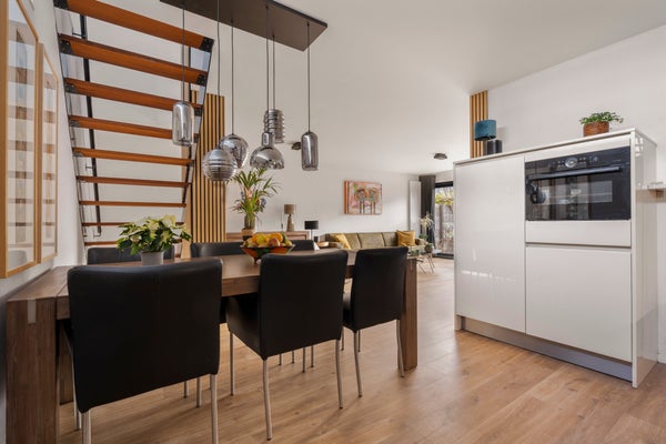 The property immediately stands out with its pleasant living room and large windows, which allow for an abundance of natural light. Through the wide sliding doors, you step straight into the sunny garden—a lovely place to relax and enjoy peace and quiet in the heart of the city. Thanks in part to 16 solar panels, the home has an energy label A, ensuring sustainable and energy-efficient living comfort.