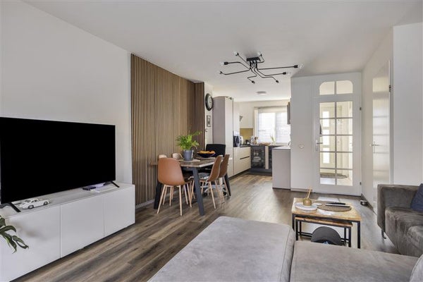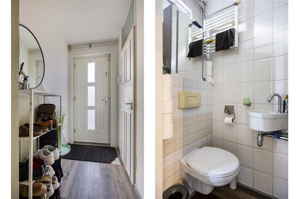 Je betreedt de woning via de entree, waar het toilet gesitueerd is en waar voldoende plek is voor een garderobe. Vanuit de hal heb je toegang tot de lichte en sfeervolle woonkamer. Dankzij de grote raampartijen geniet je hier van veel natuurlijk daglicht en een prettig ruimtelijk gevoel. De woonkamer biedt volop ruimte voor een comfortabele zithoek en staat in verbinding met de royale achtertuin.
