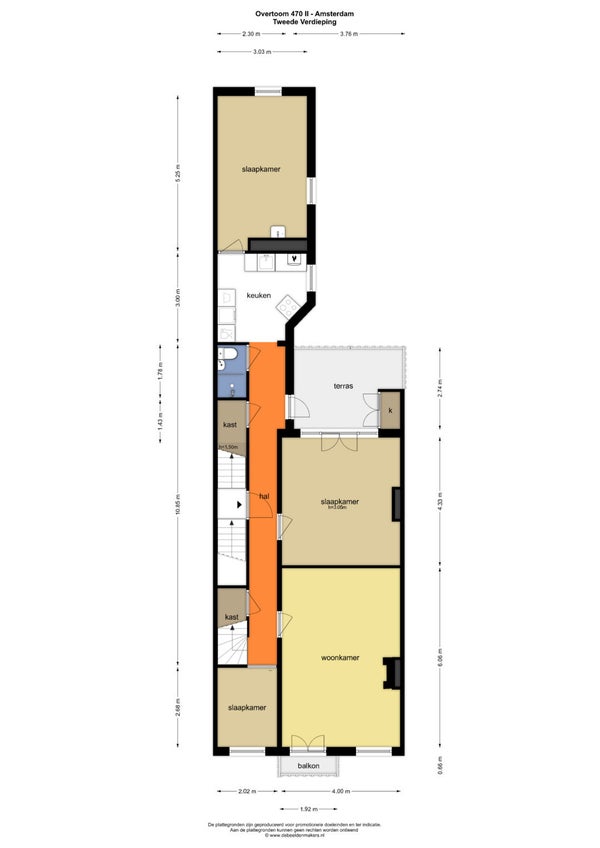 - De tussenwoning heeft een woonoppervlakte van 435 m² en beschikt over 16 kamers, waarvan 9 slaapkamers;