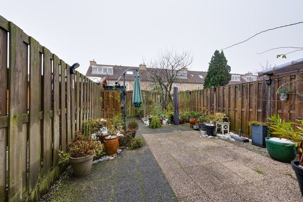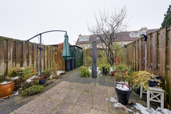 De achtertuin is breed en diep en biedt veel privacy. Door het omsloten karakter is het een fijne plek om buiten te verblijven. Achterin de tuin staat een vrijstaande schuur, geschikt voor fietsen en opslag. Tevens heeft de tuin een achterom.