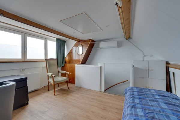 Via een vaste trap bereikt u de tweede verdieping. Deze verdieping bestaat uit één open ruimte met een schuin dak en een dakkapel aan de achterzijde. De ruimte is momenteel in gebruik als slaapkamer en/of werkruimte. Hier bevinden zich tevens de technische installaties.