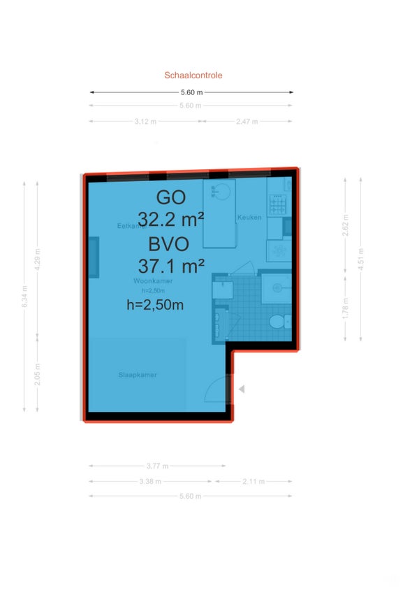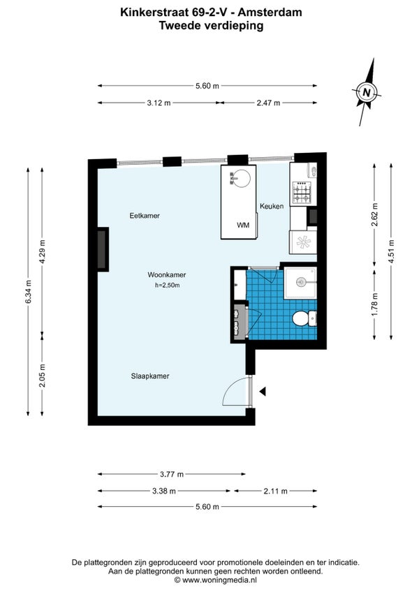 - De tussenwoning heeft een woonoppervlakte van 32 m² en beschikt over 2 kamers, waarvan 1 slaapkamer;