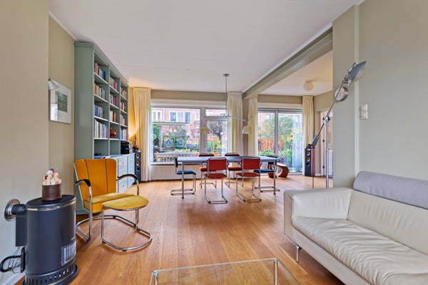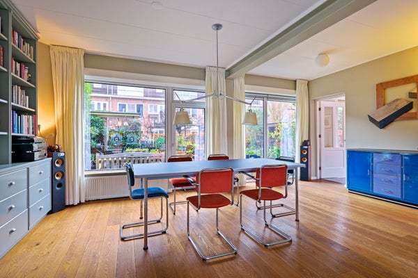 Heimansweg 54 is een ruime hoekwoning op een uitstekende locatie in de Van der Pekbuurt, met een grote, zonnige tuin op het westen. Deze woning uit 1956 biedt 157 m² woonoppervlakte op een perceel van 208 m², en de erfpacht is eeuwigdurend afgekocht. Door de hoekligging is er veel natuurlijk licht en voelt de woning royaal aan. De indeling bestaat uit een brede woonkamer, een praktische woonkeuken met uitzicht op de tuin, en verschillende slaapkamers, perfect voor een gezin. De tuin van 108 m² is voorzien van een berging en een overdekt terras, ideaal voor zonnige dagen. Het huis ligt op 10 minuten lopen van het Centraal Station, dichtbij leuke cafés, restaurants en culturele voorzieningen, waardoor het een aantrekkelijke plek is om te wonen.