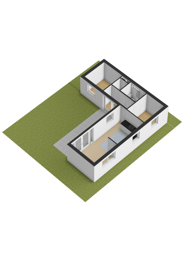 - De vrijstaande woning heeft een woonoppervlakte van 35 m² en beschikt over 3 kamers, waarvan 2 slaapkamers;