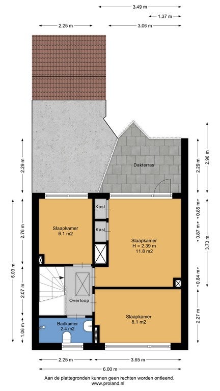 Aanwezig (143 m², gelegen op het zuidwesten)