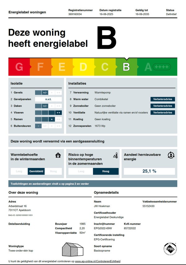 - De woning is gebouwd In 1985 en ligt in de buurt Brinkhorst in Apeldoorn;