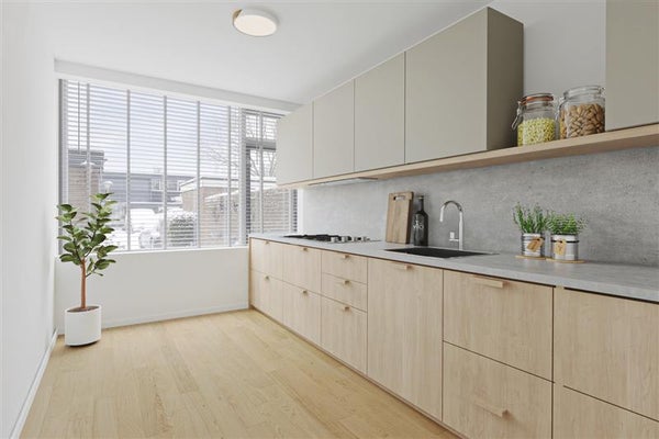 De dichte keuken bevindt zich aan de voorzijde van de woning. Hier is genoeg ruimte om te koken, van doordeweekse maaltijden tot uitgebreide diners met familie of vrienden.