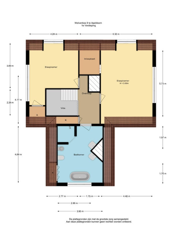 - De tussenwoning heeft een woonoppervlakte van 276 m² en beschikt over 6 kamers, waarvan 3 slaapkamers;