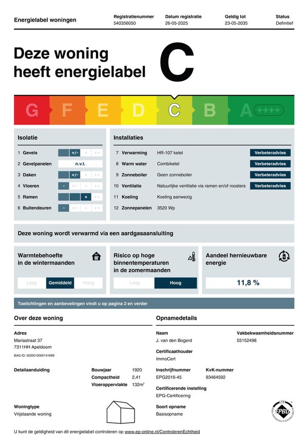 - De woning is gebouwd In 1884 en ligt in de buurt Binnenstad in Apeldoorn;